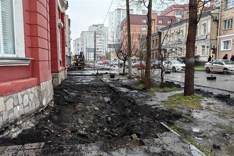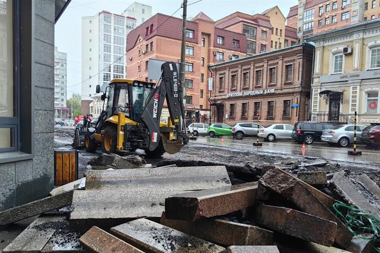 В мэрии рассказали, что бригады рабочих уже зашли на улицу Каратанова. Пока они демонтируют покрытие, бортовые камни и уличную мебель на тротуарах. Брусчатку, лавочки и урны увезут на хранение. Им найдут применение при благоустройстве других улиц.