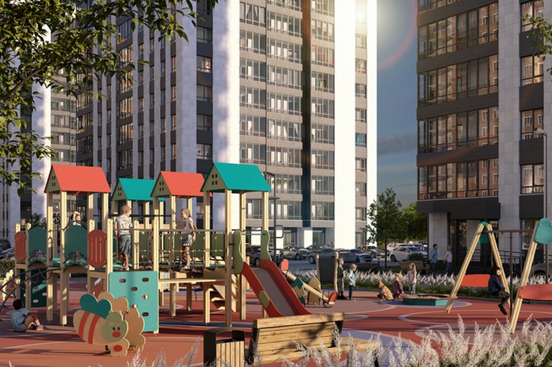 Отметим, рядом с жилым комплексом есть школа, два детских сада, поликлиника. Плюсом является и удобная транспортная доступность. В комплексе будет собственная инфраструктура. Для этого на первых этажах домов размещены коммерческие помещения.