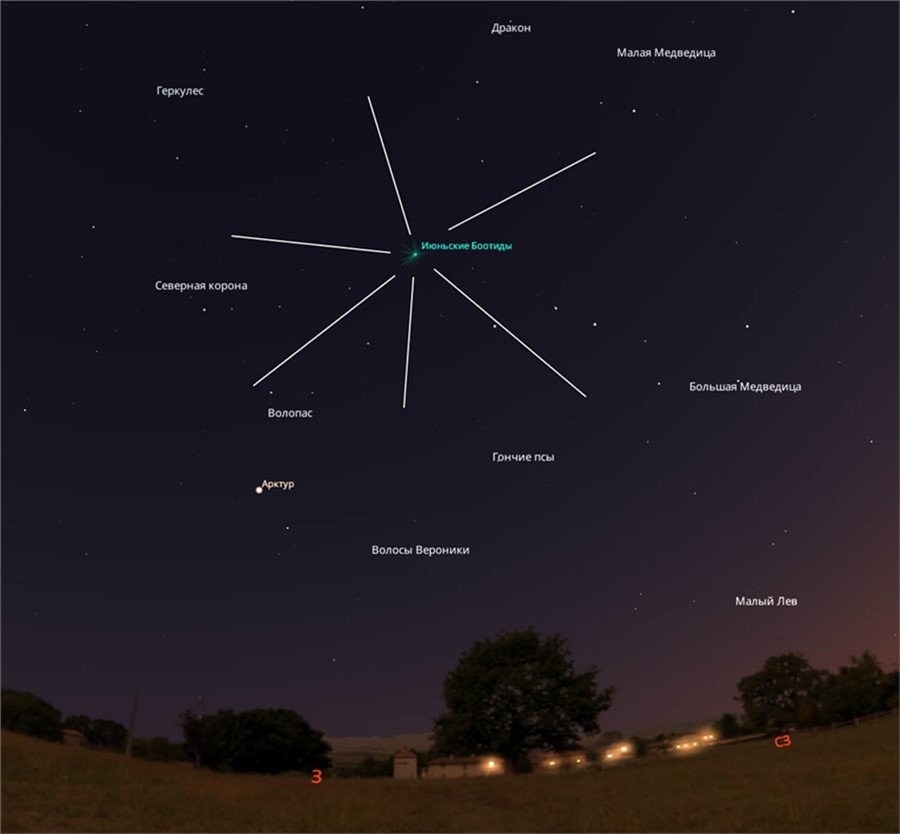 Следующий раз метеорный поток можно будет увидеть в ночь с 27 на 28 июня. Интенсивность Июньских Боотидов достигнет 100 метеоров в час. Луна не помешает — после полуночи она зайдёт, и небо станет темнее.
