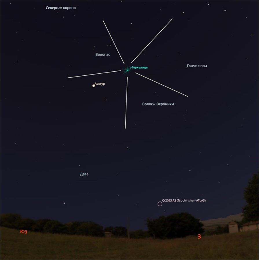 Затем в ночь со 2 на 3 июня наступит пик метеорного потока τ-Геркулиды интенсивностью до 70 метеоров в час. Радиант (точка, из которой исходят метеоры) будет находиться в созвездии Гончих Псов. Поток лучше наблюдать после часа ночи, когда Луна скроется за горизонтом.