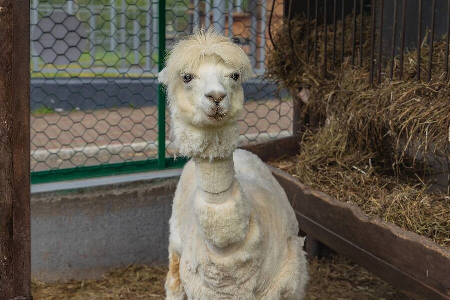 Специалисты рассказали, что длина шерсти у альпака может достигать 20 см. Чтобы животные не перегрелись на жаре, шевелюру приходится сбривать.