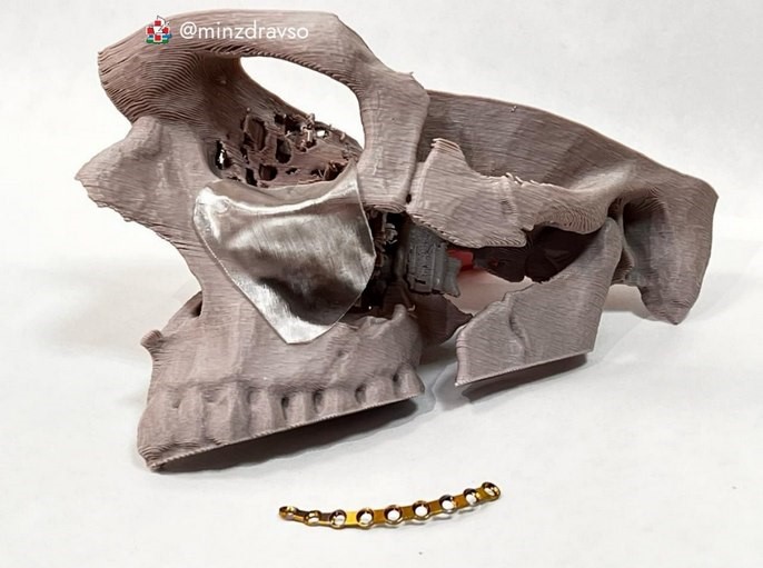 Для подготовки к операции медики создали 3D-модель черепа пациента с помощью компьютерной томографии, а затем изготовили индивидуальные биосовместимые импланты. После их установки военному предстоит пластическая коррекция рубцовой ткани.