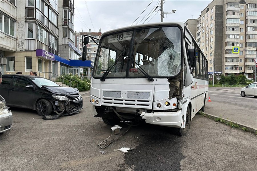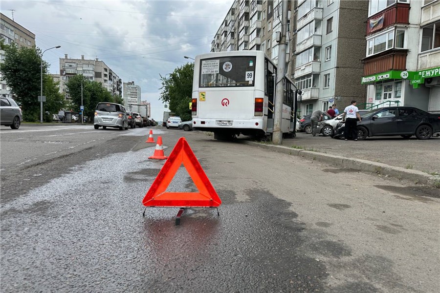 В Красноярске водитель автобуса № 99 устроил массовое ДТП. В ситуации разбираются сотрудники полиции.