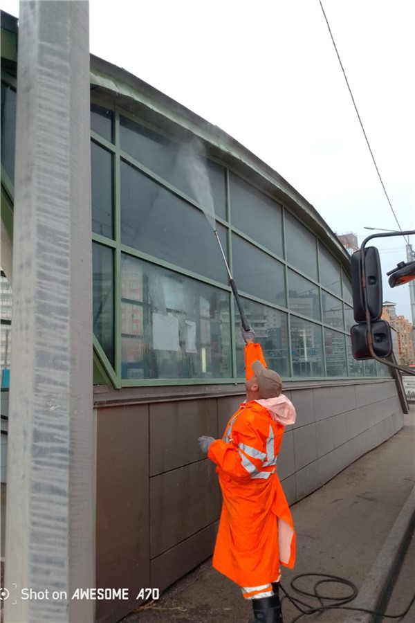 Это важная часть городской инфраструктуры, которая должна быть чистой, безопасной и комфортной. Поэтому внутри переходов сотрудники предприятия убираются вручную два раза в неделю. Входные группы очищают при помощи мойки высокого давления 1-2 раза в месяц. Это помогает сбить с них грязь, которая летит с дорог.