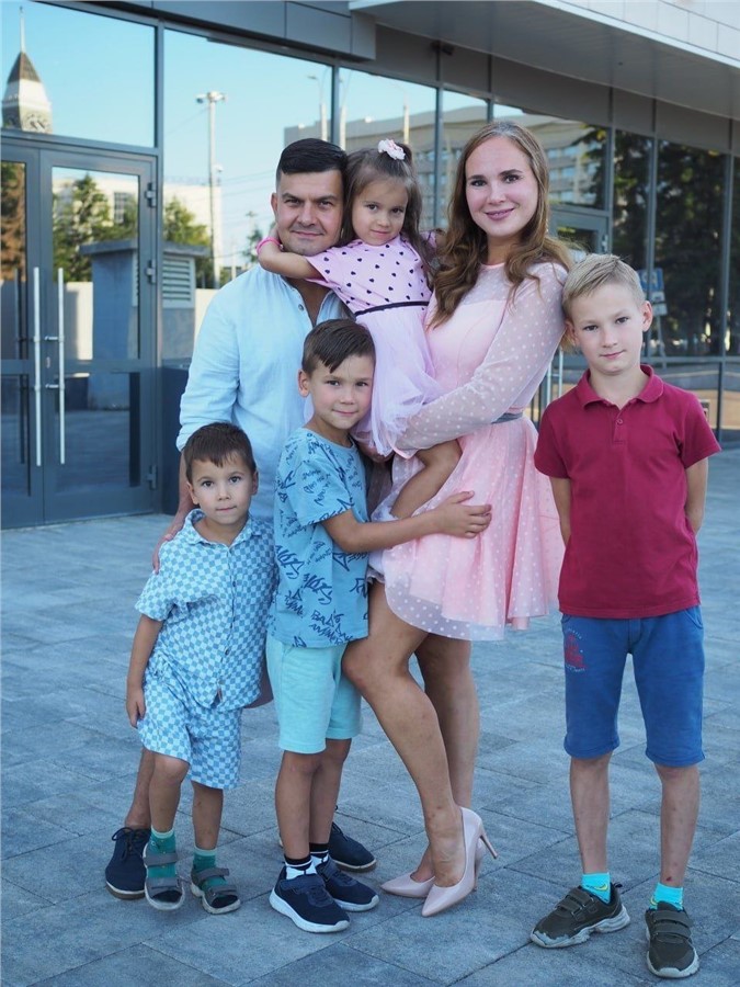 Глава семьи Антон Андреевич — сотрудник IT-компании, Елена Сергеевна работает бухгалтером. Супруги воспитывают четверых детей — трех сыновей и дочку. Старшие сыновья учатся в школе, а младшие двойняшки посещают детский сад. Родители ответственно относятся к воспитанию своих детей, мотивируя их на учебу и всестороннее развитие, а также принимают активное участие в различных городских и районных мероприятиях.