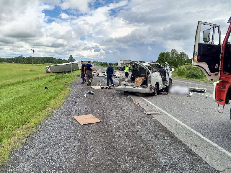 По информации ГАИ, водитель микроавтобуса Toyota Hiace, двигаясь со стороны Красноярска в направлении Боготола, выехал на полосу встречного движения и врезался в грузовик FAW, который после удара съехал в кювет.