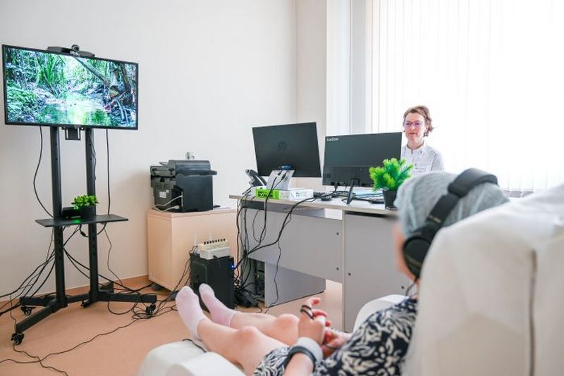 Психосоматическое состояние пациентов будут корректировать с помощью аудивовизуального мобильного комплекса. Он воздействует на оба полушария мозга путем света, звука и видео, что стимулирует процесс выработки эндорфинов, энкефалинов и серотонина. В это время пациент лежит в удобном кресле в наушниках.