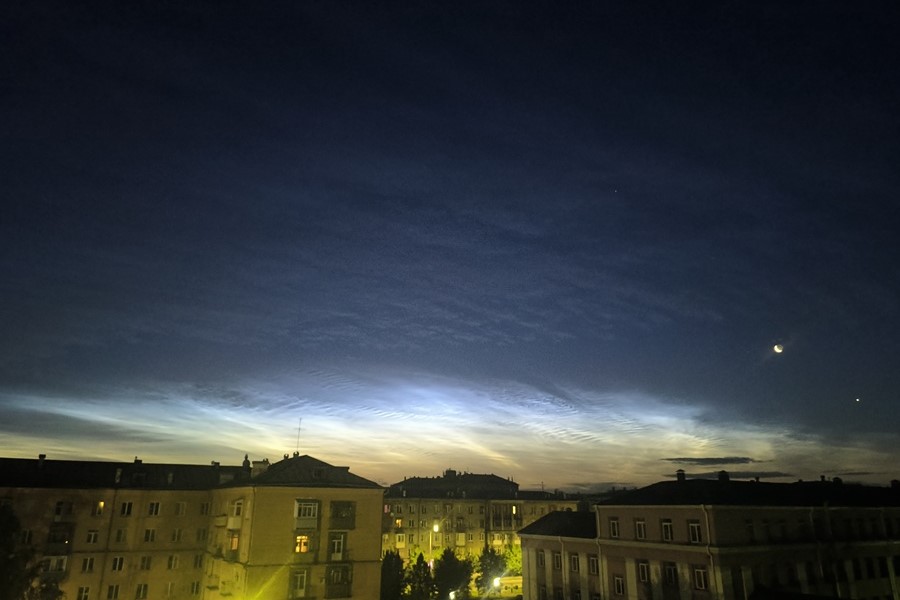 В ночь на 22 июля над Красноярском и другими городами Сибири можно было заметить редкие серебристые облака. Снимками поделились астрономы-любители в сообществе AstroAlert.