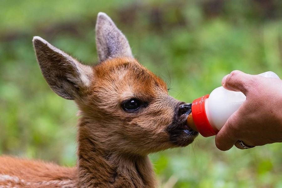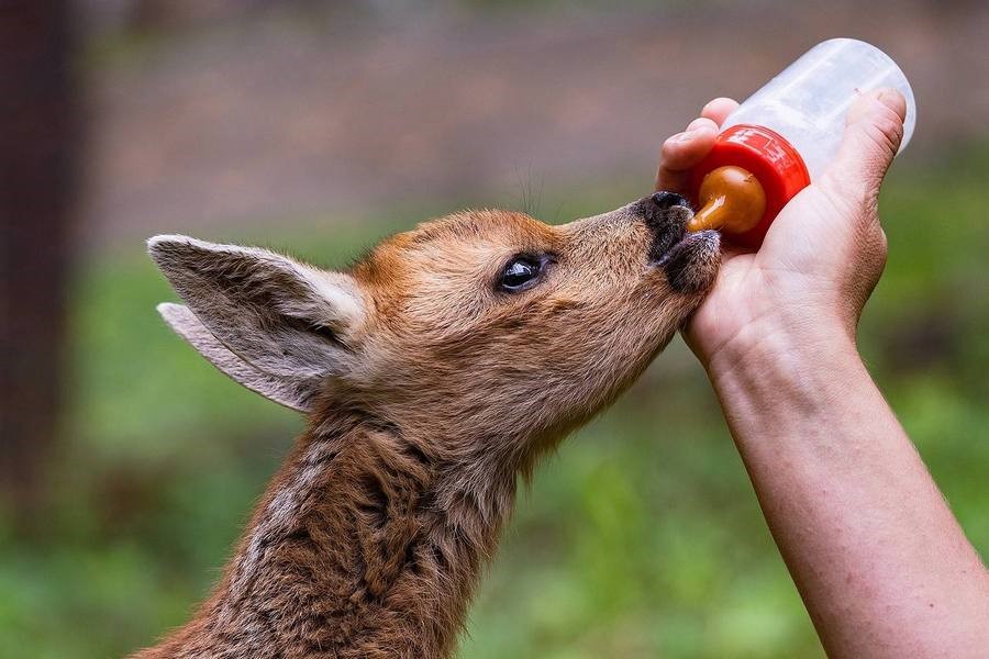 Обычно такие «брошенные дети» не выживают. В зоопарке же косулёнка усыновили зоологи. Они выхаживают малыша, кормят его и стараются полностью заменить маму.