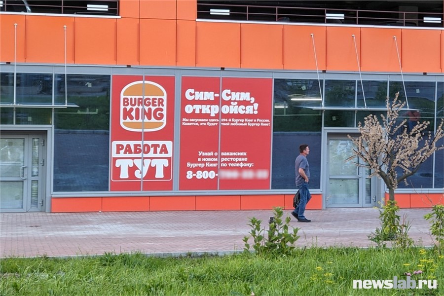 На плакате сказано, что это будет 1194-й «Бургер кинг» в России. Заведение общественного питания сейчас набирает персонал. Информации о дате открытия на плакате нет. В этом же здании работает пиццерия.
