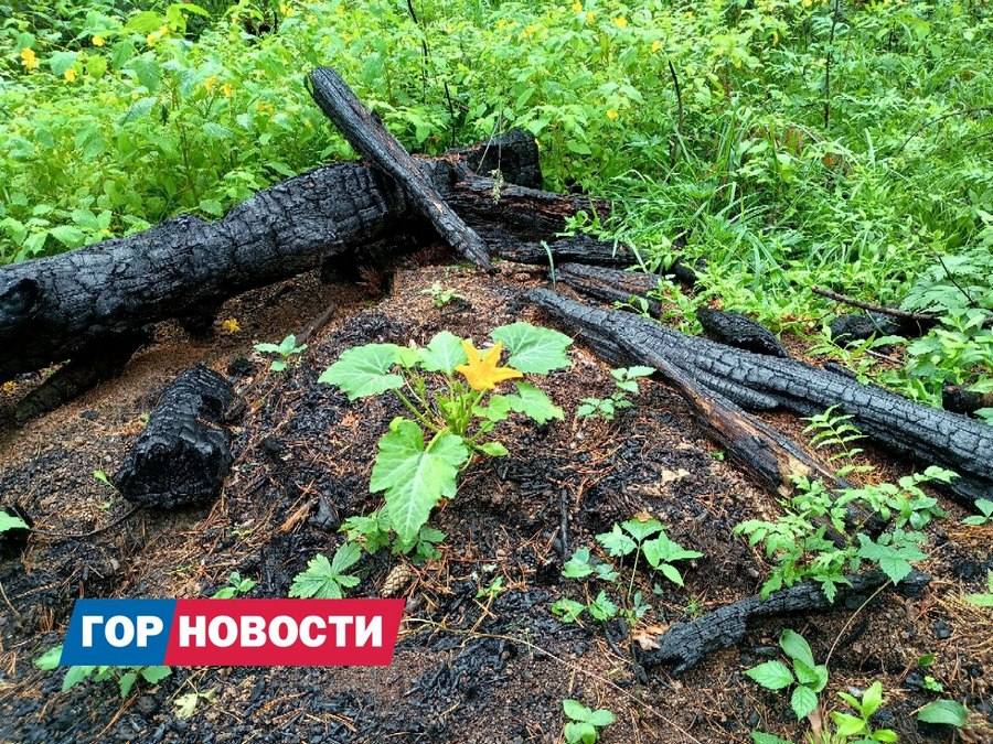 Также отмечается, что кабачки выросли на месте, где поздней осенью и зимой сжигают порубочные остатки. Из-за этого растения вряд ли выживут.