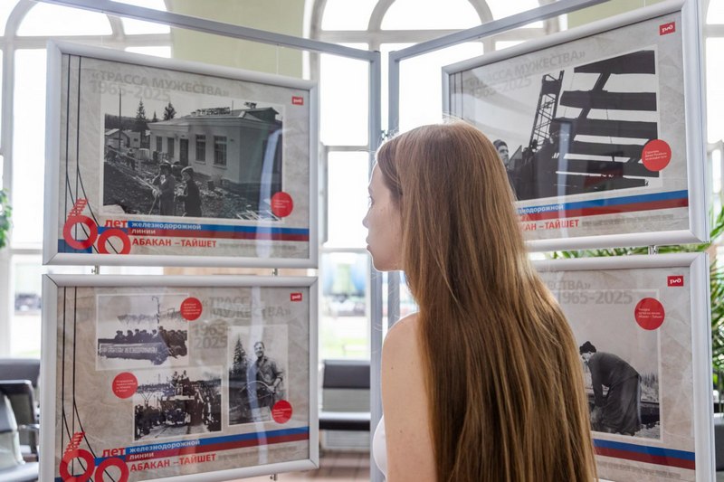 Красноярская железная дорога открыла на железнодорожном вокзале Абакана фотовыставку к юбилею легендарной «Трассы мужества» Абакан — Тайшет: она посвящена 60-летию завершения ее строительства.