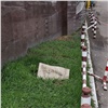 «Я шла по тротуару с другой стороны и плита упала прямо у меня на глазах. Она разбилась о бордюр и мелкие осколки долетели до меня. И, видимо, это не первый упавший кусок, там рядом еще один воткнулся в траву», — рассказала красноярка.