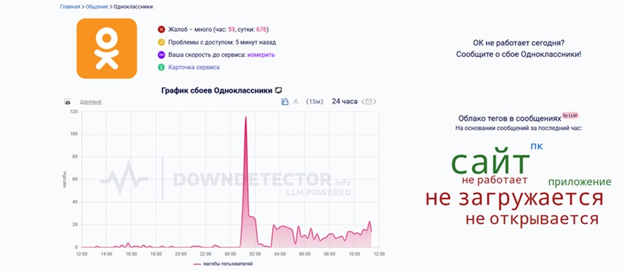 Также россияне жалуются на проблемы в «Одноклассниках». За последний час на работу сервиса поступило более 70 жалоб. Большинство из них касается работы приложения в целом.