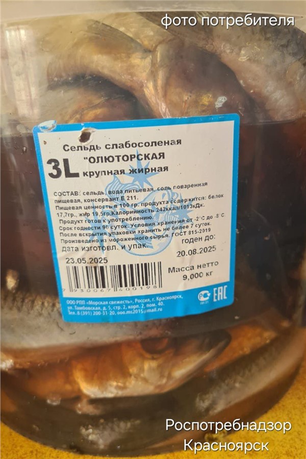 Роспотребнадзор объявил предостережения о недопустимости нарушения сразу нескольким юридическим лицам — красноярскому рыбоперерабатывающему предприятию «Морская свежесть» и ИП Наговицину А. А.