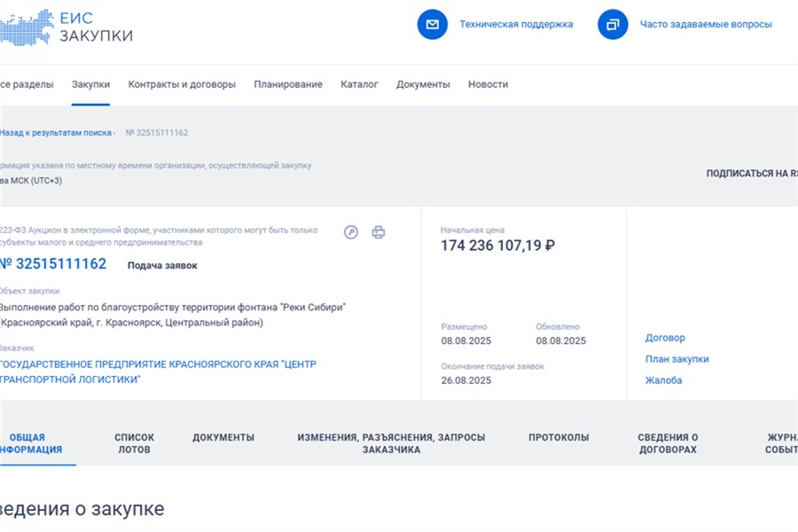 Начальная стоимость аукциона — 174,24 млн рублей. Завершить работы планируется к концу августа 2026 года.