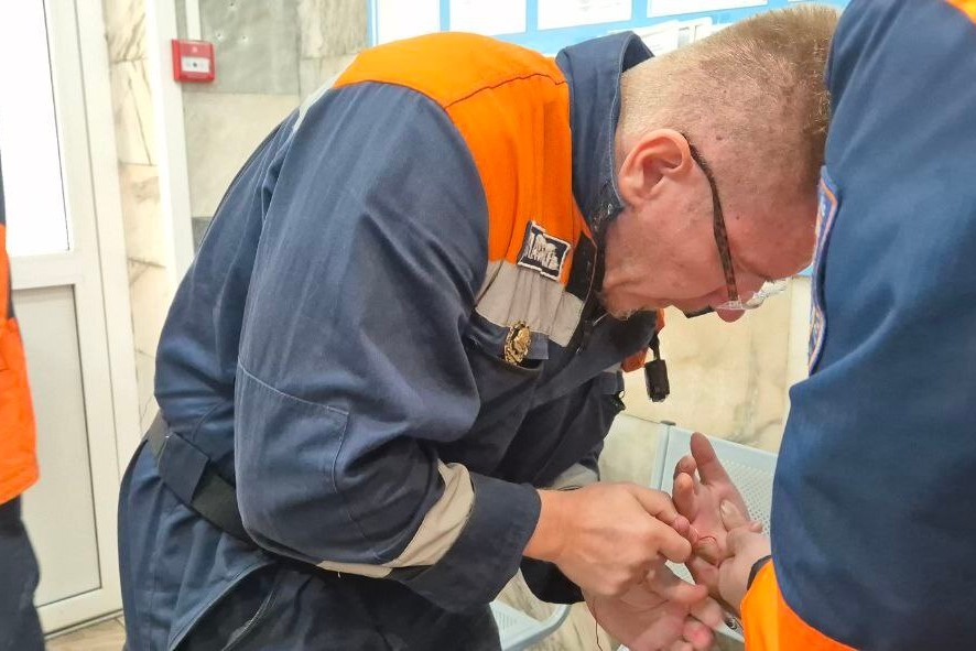 Тогда дежурный врач обратился к краевым спасателям. Те приехали на место и аккуратно, с помощью нитки, освободили палец от сдавливающего украшения.