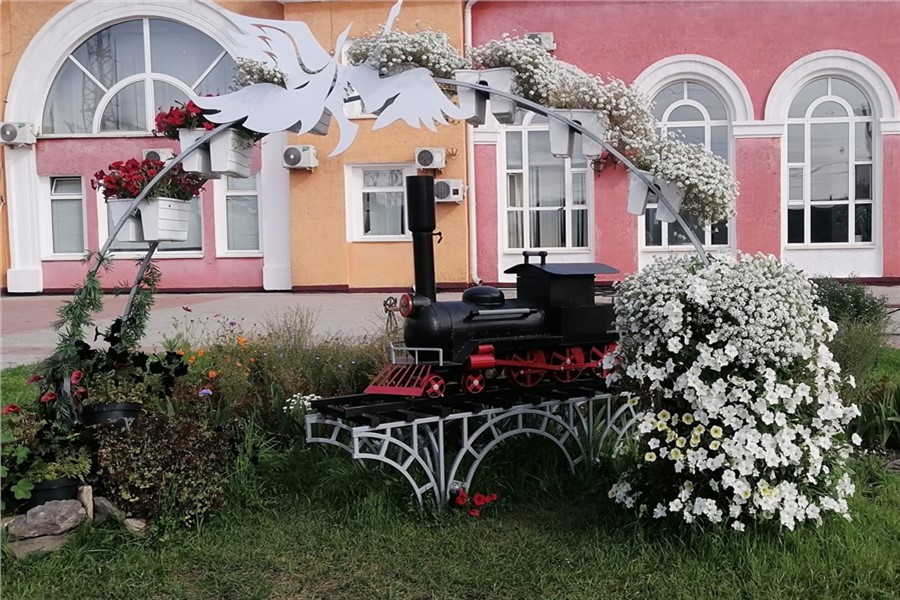 Железнодорожники высадили рассаду в начале лета, а теперь перрон вокзала превратился в маленький, с любовью созданный, сквер. Арт-объект уже стал своеобразной фотозоной для пассажиров и гостей города.