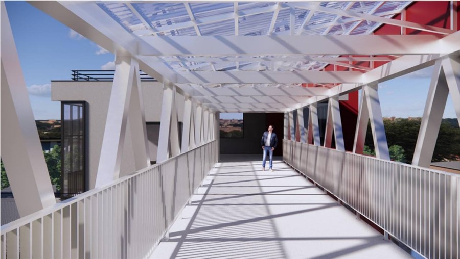 Сам переход будет выполнен из монолитного железобетонного каркаса и сборной алюминиевой конструкции.