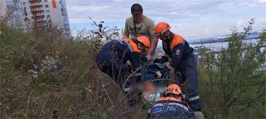 Спасатели оказали помощь красноярцу, который упал с крутого склона смотровой площадки в Студгородке.