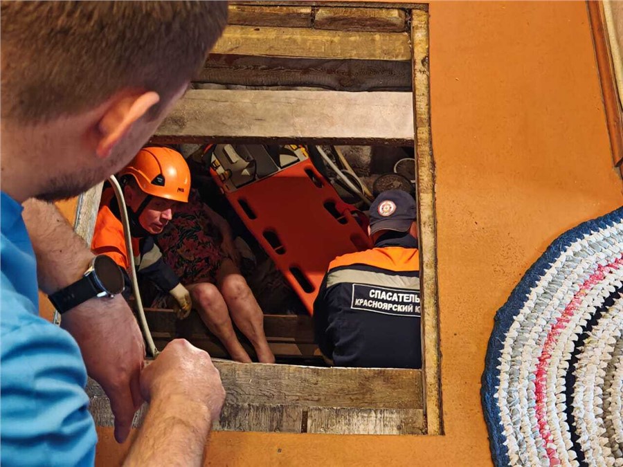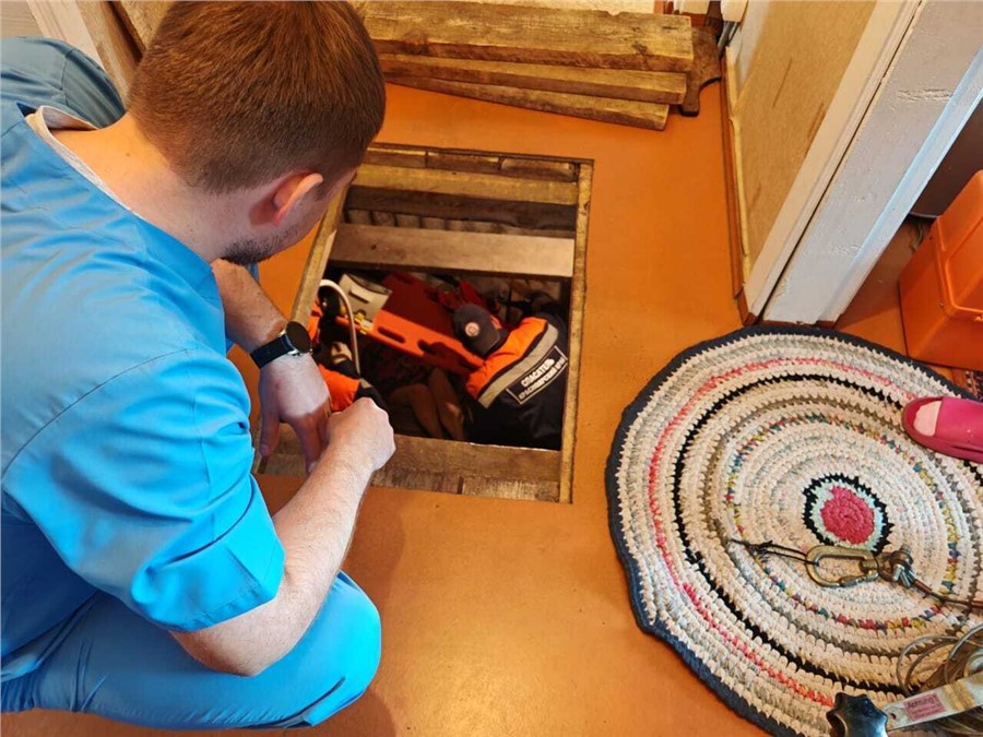 В Красноярском крае шушенские спасатели эвакуировали из подполья в частном доме 93-летнюю женщину. Она упала в него и пролежала на глубине 3-х метров целые сутки, пока ее не обнаружил родственник.