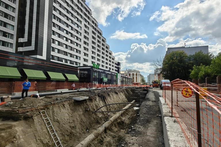 В мэрии напомнили, что на Каратанова на этой неделе обнаружили захоронения, предположительно, 400-летней давности. Поэтому сейчас в котловане, который приготовили для замены старого водопровода, параллельно идут археологические и коммунальные работы. После замены сетей котлован засыпят. На участке улицы со стороны Ленина благоустроители уже укладывают новую брусчатку.