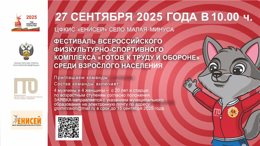 Отдельно выявляется победитель «Эстафеты ГТО». По итогу Фестиваля будет сформирована команда Минусинского района для участия во втором этапе в городе Красноярске. Заявки принимаются до 15 сентября 2025 года, регистрация доступна на сайте www.gto.ru.