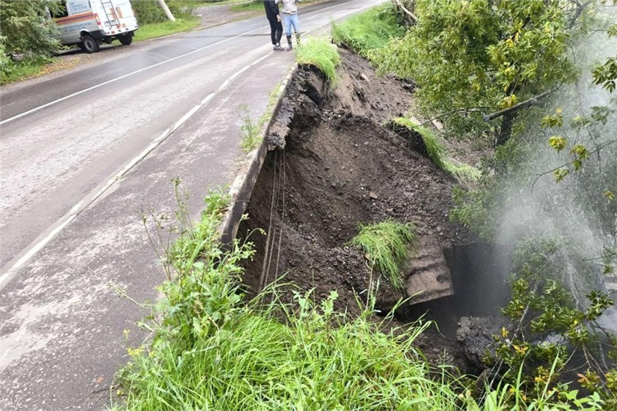 По данным специалистов службы ГО и ЧС, в районе дома 128 был обнаружен поток воды со склона, который разрушает грунт под дорогой. Из-за этого принято решение перекрыть движение на участке.