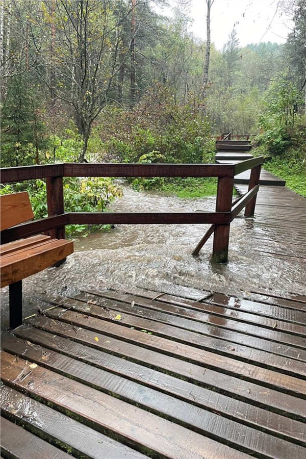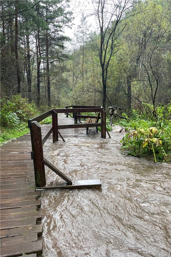 «От улицы Свердловская до кордона Лалетино, на городской территории, затоплена экотропа имени Ивана Ярыгина, а на автомобильной дороге в районе Чертова пальца произошел размыв части насыпи. Будьте внимательными, старайтесь не ходить и не ездить здесь в темное время суток» предупредили сотрудники парка.
