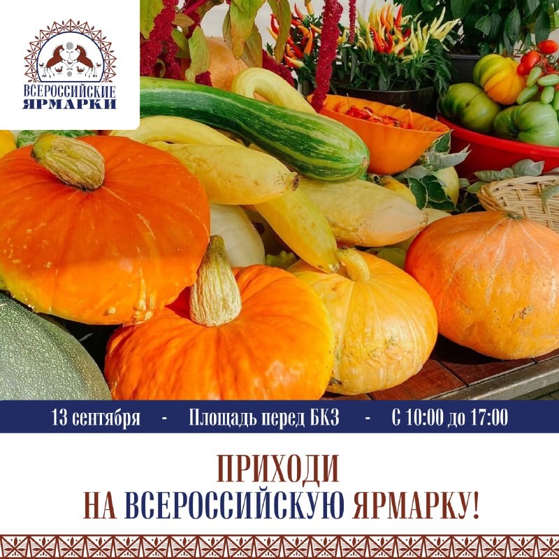 «Гвоздем программы 13 сентября станет конкурс „Битва титанов“: „сразятся“ кабачки и тыквы. Победителей определят в двух номинациях: „Самый тяжелый кабачок“ и „Самая объемная тыква“. Стать участником может любой желающий! Принимать „здоровяков“ будут в день ярмарки с 10:00 до 13:00», — рассказали в мэрии.
