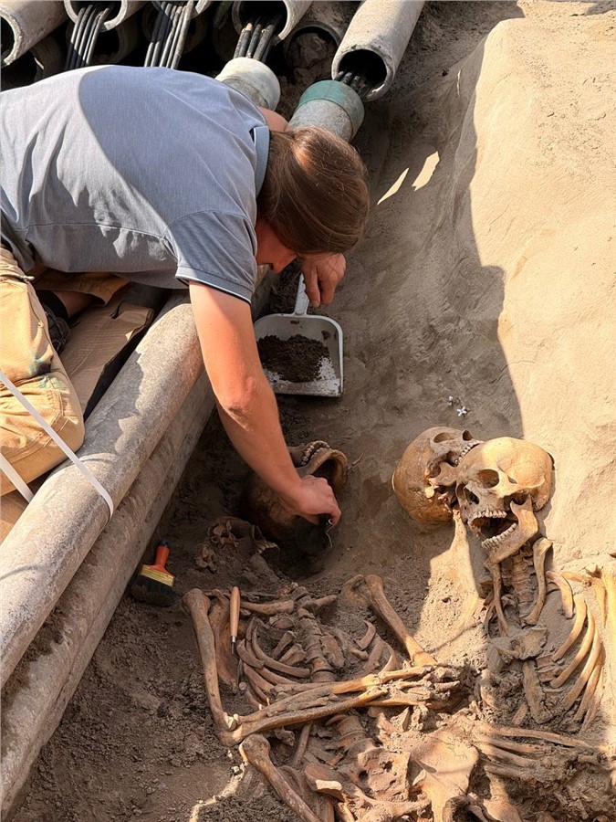 «Погребения уложены друг на друга, ярусами. В настоящее время работы идут на втором. После его снятия мы поймем, сколько еще захоронений нас ждет, — пояснил директор Красноярской геоархеологии Данил Лысенко. — Также мы установили контуры ямы погребения. Пока планируем, что работы здесь продолжатся до конца следующей недели».