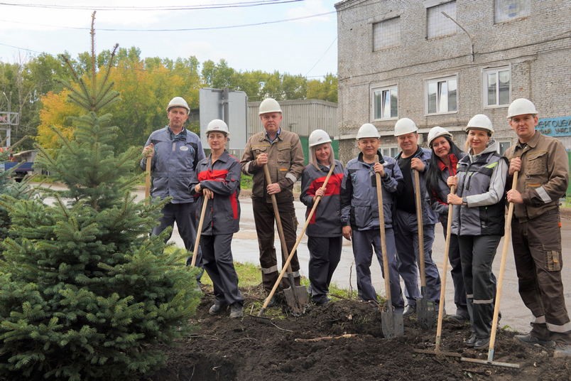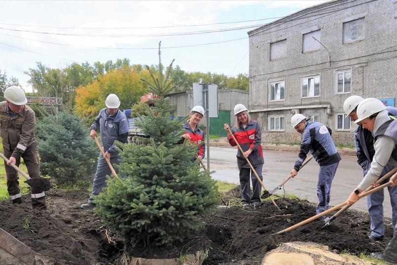 На территории завода ООО «Красноярский цемент» (дочернее общество АО «ХК «Сибцем») высадили более 25 голубых елей.