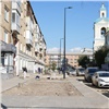 «На левой стороне улицы уже уложена брусчатка, подрядная организация планирует зайти в ближайшее время и на противоположную сторону. Кроме того, улица относится к объектам культурного наследия. Во время изысканий археологи обнаружили много находок: от старых монет до царского оружия. Это повлияло на сроки выполнения работ по благоустройству, потому что их нельзя проводить до окончания исследований археологии», — пояснили в пресс-службе.