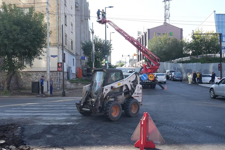 «На каждой улице сначала мы выполняем демонтажные работы, затем заходят другие подрядчики: протягивают кабельную продукцию, ставят столбы освещения, светофоры. После того как они заканчивают свою работу, мы можем приступить к благоустройству. Планируем завершить все работы в срок», — объяснил представитель ООО «ЕнисейГрупп» Артур Бабаян.