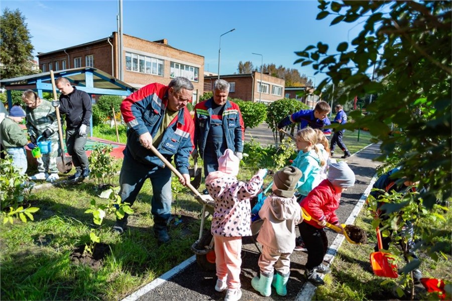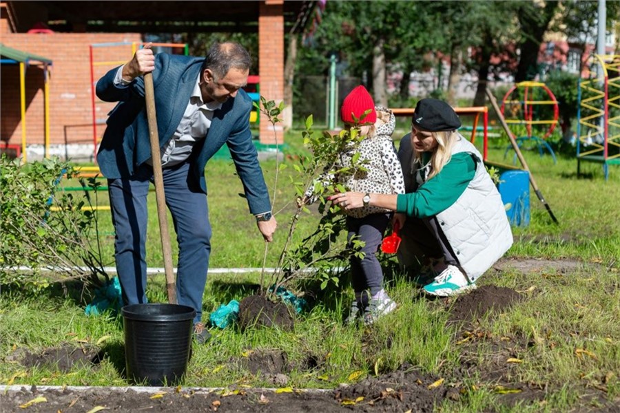 В Красноярске стартовал осенний Экомарафон «Сибирской генерирующей компании» Первая акция прошла на территории детского сада № 165, где сотрудники СГК вместе с детьми, их родителями и педагогами посадили 100 кустов сирени.