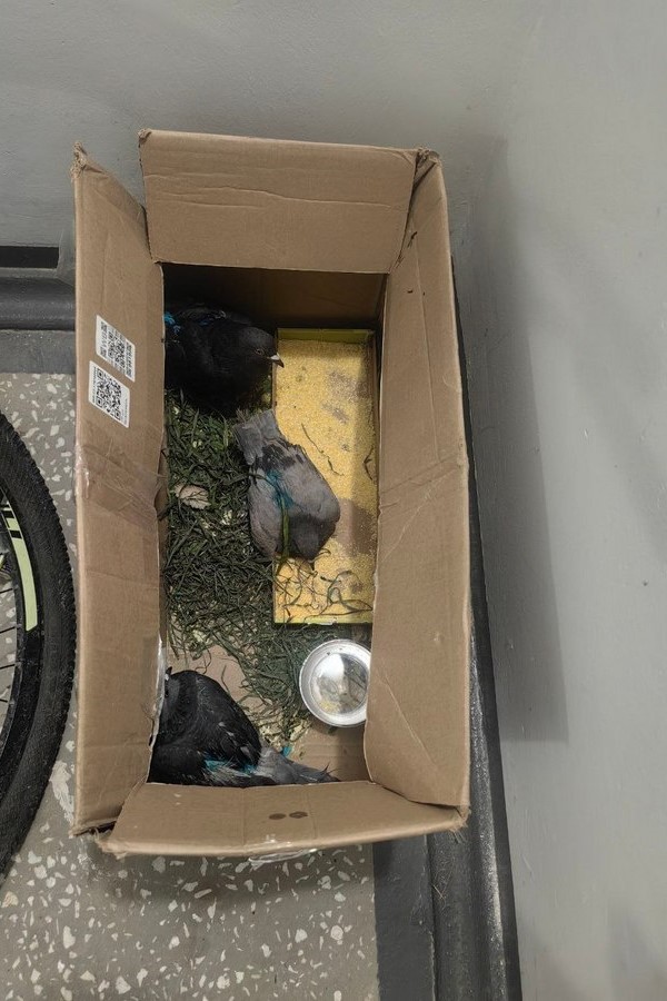 Кроме того, жители ищут добровольцев, готовых помочь в спасении и лечении пострадавших птиц. Сейчас раненых голубей разместили в коробке на улице.