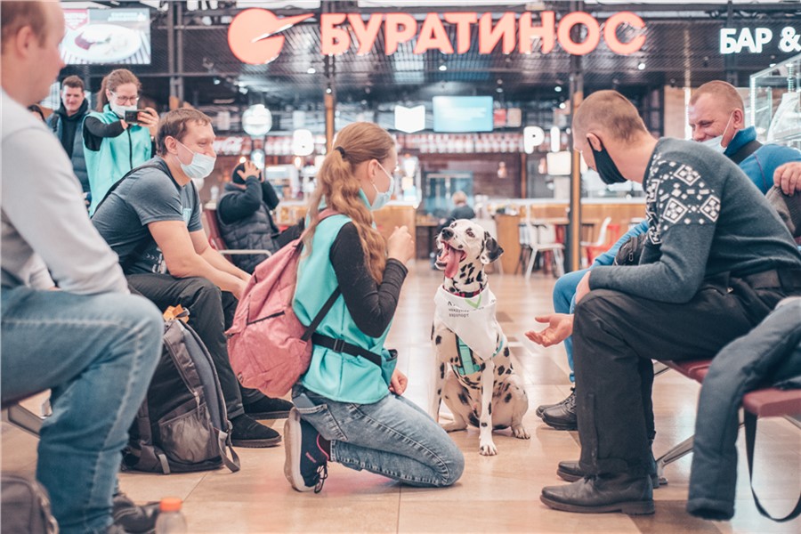 «В стерильной зоне на третьем этаже аэропорта пассажиры могли пообщаться с дружелюбными собаками, погладить их, угостить лакомствами и сделать памятные фотографии. Такое взаимодействие помогало снизить тревожность пассажиров перед полетом, особенно у детей, и делало ожидание рейса более приятным и запоминающимся», — рассказали в пресс-службе.