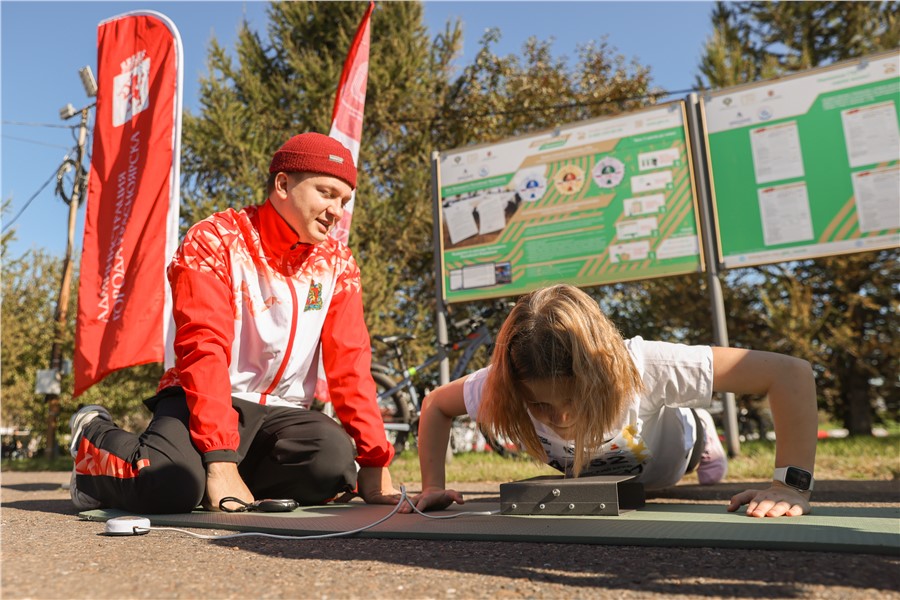 Во время забега работала площадка для проверки норм ГТО. На ней участники спортивного мероприятия пробовали свои силы в отжиманиях и наклонах. Также перед забегом спортсмены приняли участие в совместной разминке.