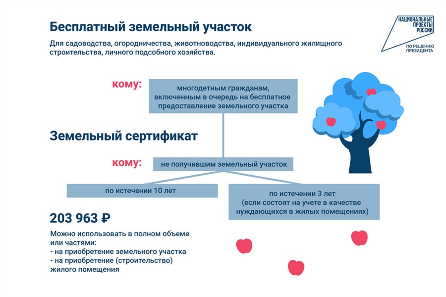 Тем, кто не получил земельный участок в течение 10 лет предоставляется земельный сертификат. Средства с него можно потратить на покупку земли, жилого помещения или строительство дома.