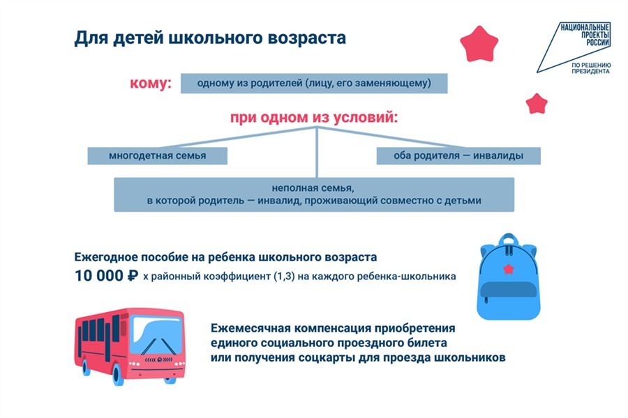 Многодетные родители и родители инвалиды ежегодно получают пособие на детей школьного возраста, а также могут рассчитывать на соцкарту для проезда школьников или компенсацию стоимости проездного.