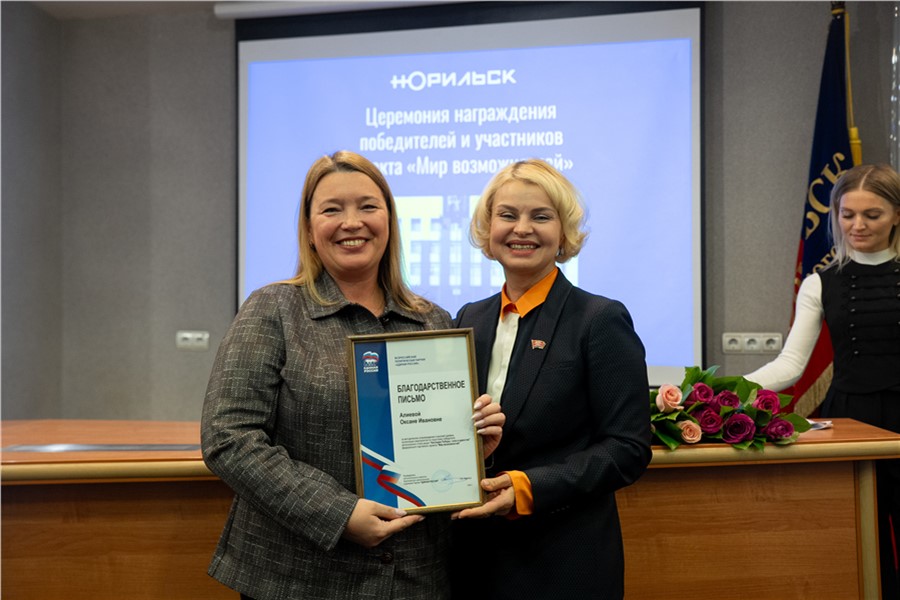 В Администрации Норильска прошла торжественная церемония награждения победителей и активных участников федерального партийного проекта «Мир возможностей».