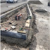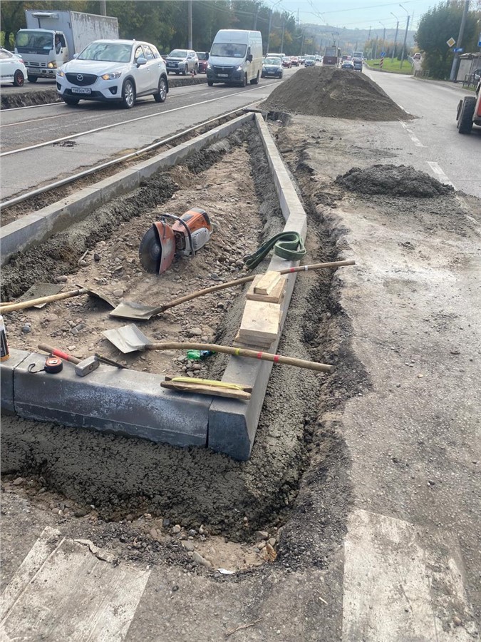 Дорожники уже вскрыли основание полотна и устанавливают бортовые камни.