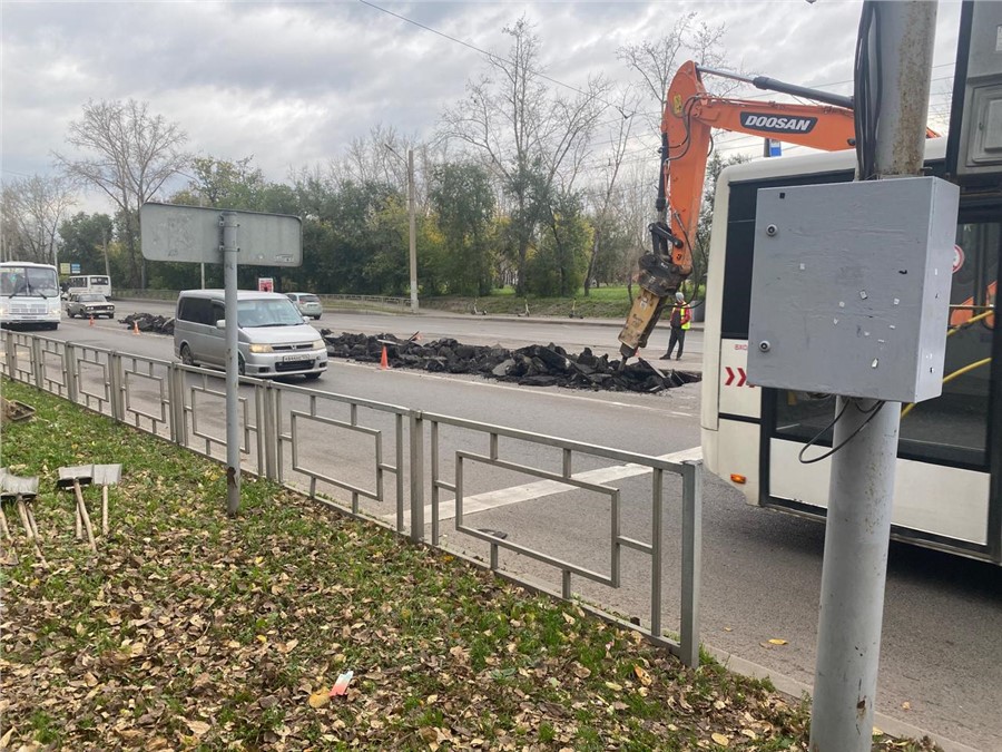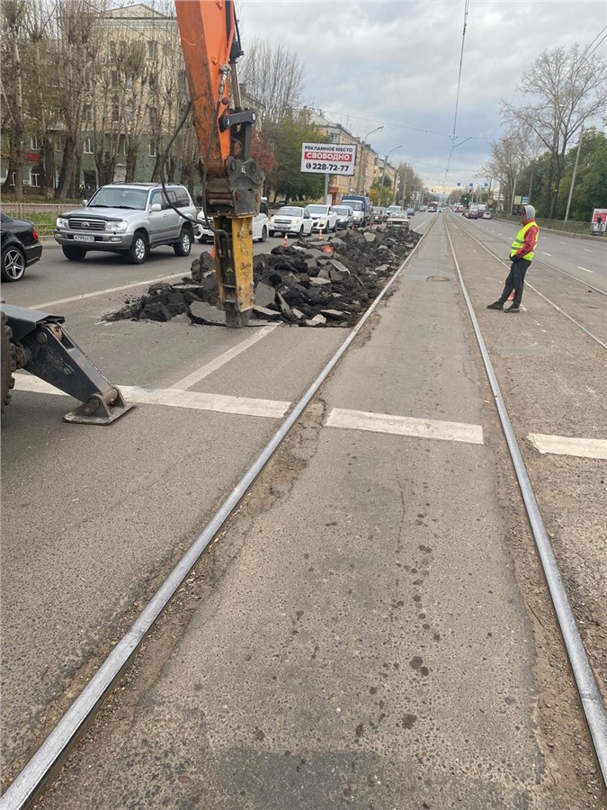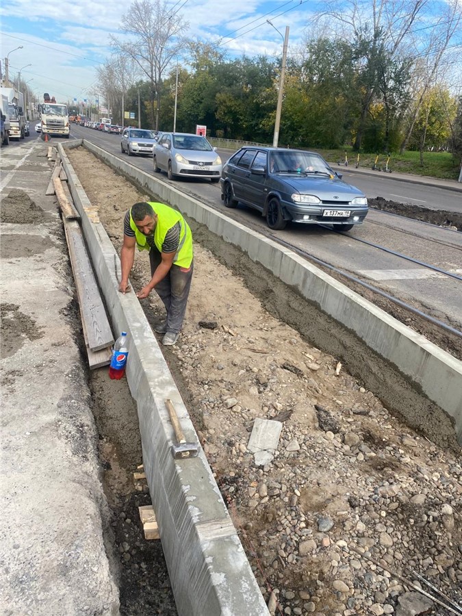 В Кировском районе Красноярска на улице Мичурина делают новые трамвайные остановки в районе кинотеатра «Мечта» и Учкомбината — по две в каждую сторону.