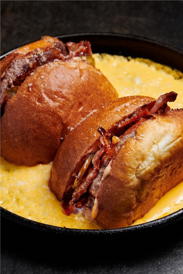 «Всё это великолепие заливается обильным потоком горячего сырного соуса! Бургер становится невероятно сочным. Отламываешь кусочек, макаешь его в ещё больше сыра... и просто наслаждаешься. Этот бургер — эксклюзив для гостей. На доставку его не отправить, потому что магия шипящей сковороды и моря сыра должна случиться прямо у вас на столе», — анонсировали блюдо в ПАПА’S.