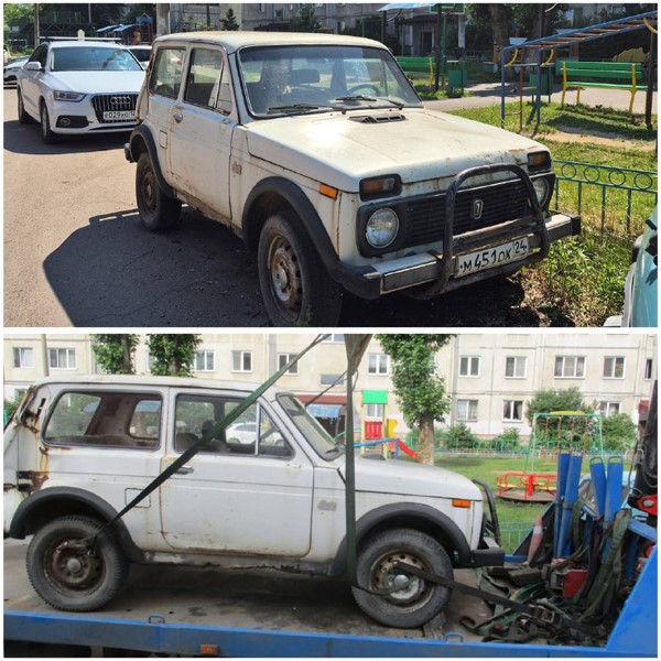Напомним, вывоз брошенных автомобилей стал возможным после принятия постановления администрации города Красноярска № 354 от 19.04.2024. Согласно этому документу, транспортное средство могут признать брошенным, в том числе, если оно не используется более 30 дней. Определяют это, в частности, по внешнему виду.