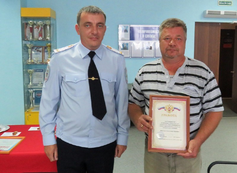 За проявленное правосознание, содействие в раскрытии преступления и задержание подозреваемого замначальника полиции Канска Антон Бундин со словами благодарности вручил Александру Майснеру грамоту.