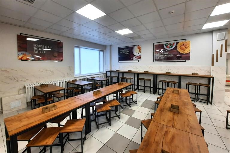 В Советском районе обновленным пространством может похвастаться школа № 98. Зал школьного кафе разделили на несколько зон. В нем можно поесть, отдохнуть, поиграть, а также здесь проводятся занятия, киноуроки и кулинарные мастер-классы. На большом экране демонстрируют меню и фильмы о здоровом питании.
