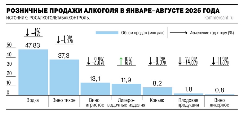 Затем последует дальнейшее снижение спроса, которое прослеживается на рынке с начала 2025 года. Согласно Росалкогольтабакконтролю, в январе—августе текущего года в России было продало 132,5 млн декалитров (дал) алкогольной продукции без учета пива, сидра, пуаре и медовухи, что на 11,4 % меньше год к году. Спрос на пиво в январе—июне при этом снизился на 16,3 % год к году, до 291,1 млн дал.
