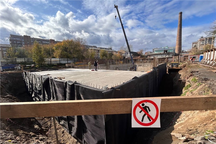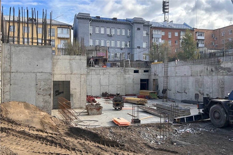 В Красноярске будущий Суриков-центр готов на 10%. Строители заканчивают возводить стены подземной части здания.