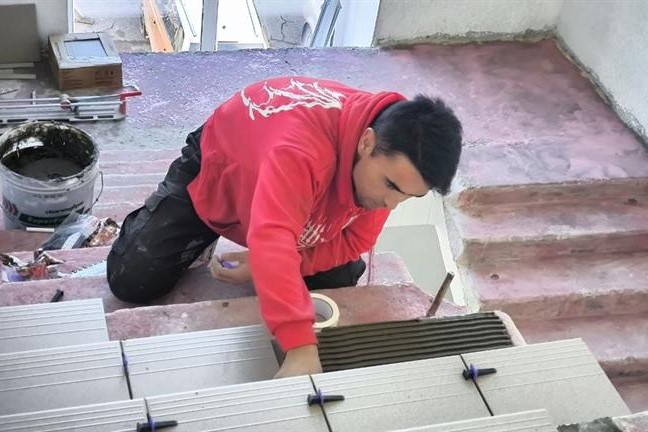Сейчас идёт монтаж системы отопления, демонтировано старое ограждение на лестничных маршах, вскоре установят новые перила. Также рабочие приступили к укладке керамогранита на ступенях.